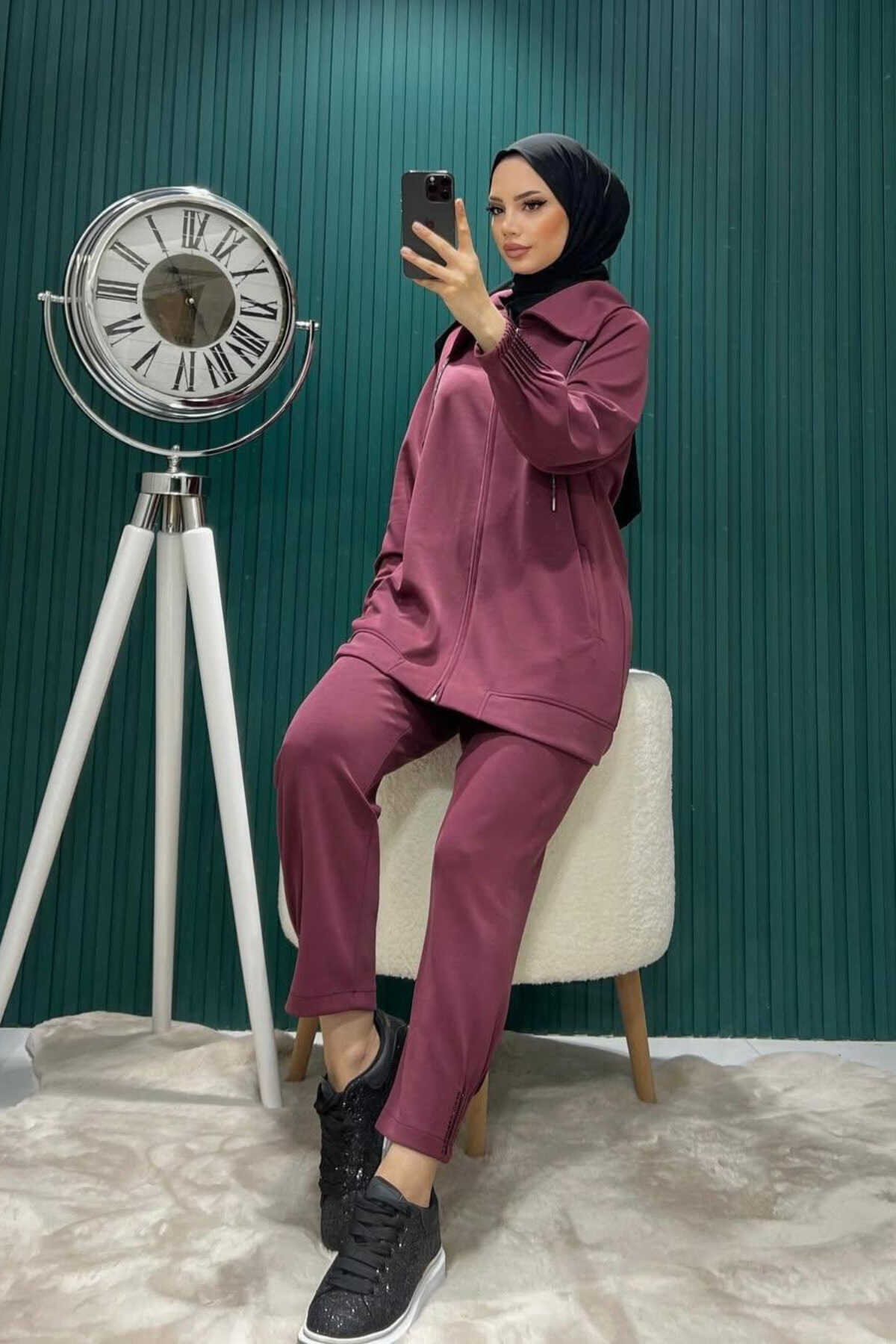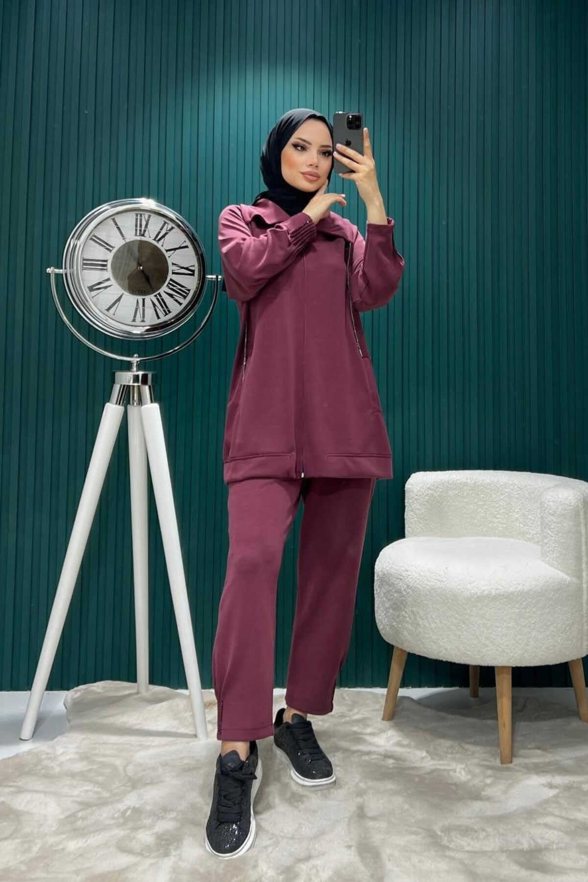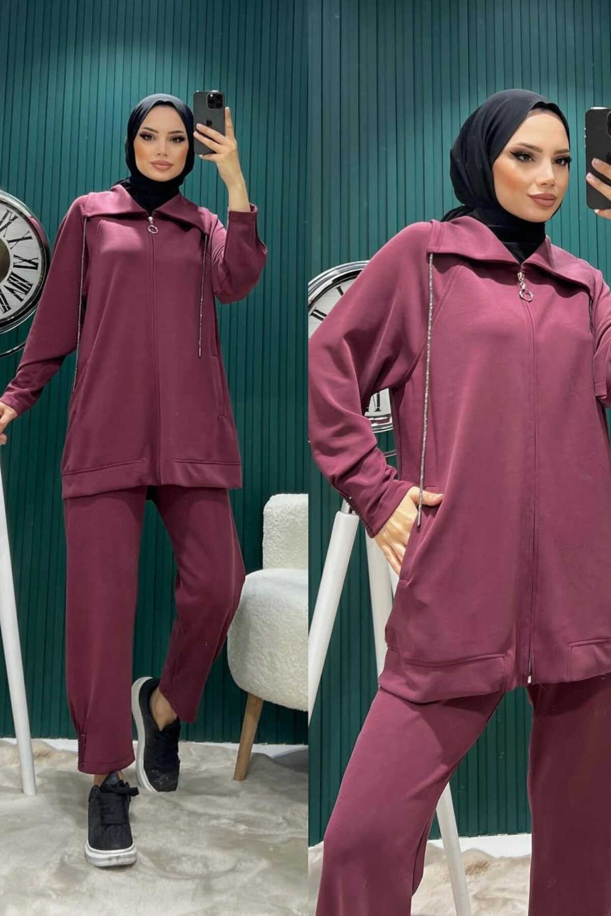 - Rahat kesimi ile günlük kullanım için ideal, oversize ikili takım.; - Her yaş grubuna hitap eden, şık ve rahat bir tarz sunar.; - Esnek yapısı sayesinde gün boyu konfor sağlar; hareket özgürlüğü tanır.; - Kolay bakım imkanı sunan, 30°C'de narin yıkama önerisiyle pratik kullanım.; - Sade ve düz tasarımıyla kolayca kombinlenebilen, her ortama uyum sağlayan bordo renk seçeneği.; - Günlük kullanım için ideal olan bu takım, casual giyimin vazgeçilmez parçasıdır.; - İki parçadan oluşan set içeriği; tunik ve pantolon olmak üzere tam bir görünüm sunar.; - Şal yaka detayı ile modern ve zarif bir stil vurgusu yapar.; - Tesettür giyim koleksiyonuna özel olarak tasarlanmıştır; şıklığı ve rahatlığı bir arada sunar.; - Parıltılı detaylarıyla göz alıcı bir görünüm kazandırırken, boncuk işlemeli tasarım dikkat çeker.; - Lastikli paça tipi sayesinde hem rahatlık hem de estetik bir duruş sergiler.; - Çift cepli tasarım fonksiyonellik katarken küçük eşyalarınız için pratik saklama alanları sunar.; - Tesettür giyim tercihlerine uygun olarak dizayn edilmiş normal bel yüksekliğiyle konforlu bir oturuşa sahiptir.; - 3 iplik dokuma tipi dayanıklılığı arttırarak uzun süreli kullanım vaat eder.; - Mom silueti ile retro esintiler taşıyan bu takım, zamansız bir parça olarak gardrobunuzda yerini alır.; - Pamuklu materyali cildinizle dosttur; nefes alabilen yapısıyla gün boyu ferahlık hissi verir.