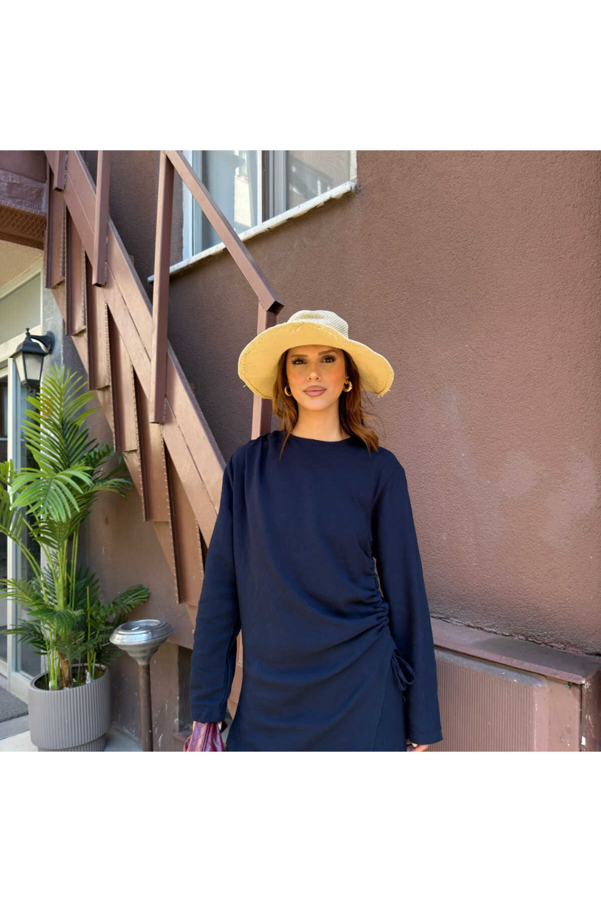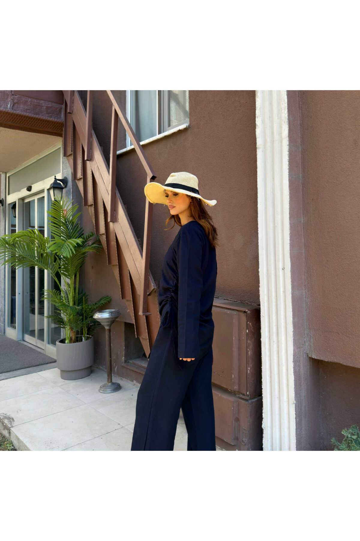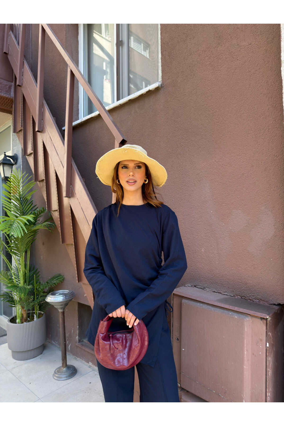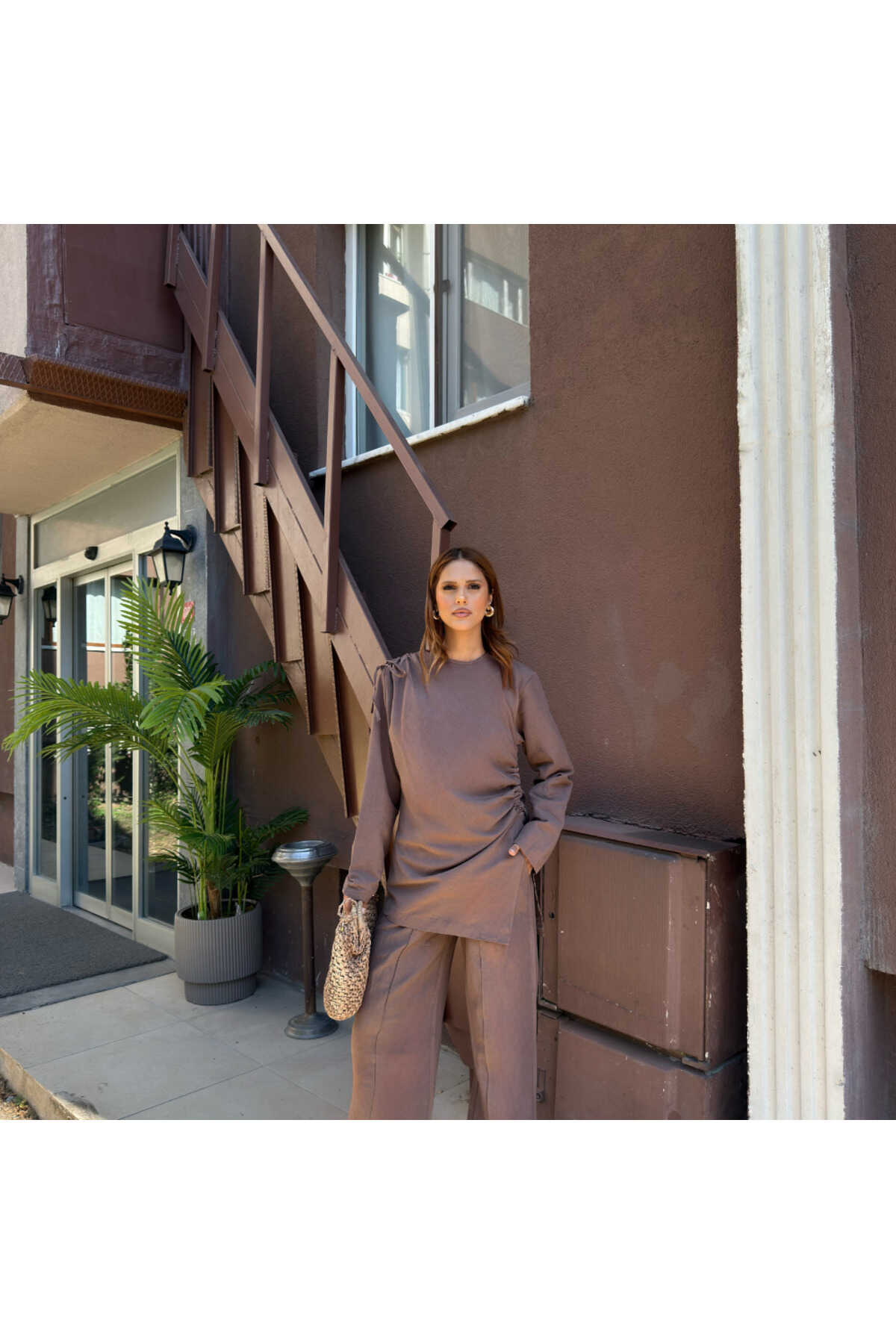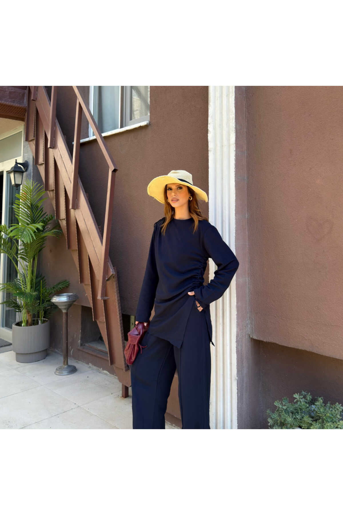 - Haki rengiyle şıklığı ve doğallığı bir arada sunan salaş takım, gündüzden geceye rahatlıkla tercih edilebilir.; - Normal bel kesimi ve bol paça tasarımı ile gün boyu konfor sağlar.; - Standart kol tipi ve fermuarlı kapama şekli, pratik kullanım sunar.; - Yetişkin yaş grubuna hitap eden bu takım, tesettür giyim koleksiyonunun zarif bir parçasıdır.; - Uzun boyu ve ince yapısı ile yaz aylarında serinlik hissi verir.; - Dokuma kumaş tipi, dayanıklılığı ve nefes alabilirliği ile öne çıkar.; - Tunikli pantolonlu alt-üst takım olarak tasarlanmıştır; hem şıklığı hem de rahatlığı bir arada sunar.; - A-line silueti sayesinde vücut hatlarını nazikçe sararak feminen bir görünüm kazandırır.; - Düz deseniyle sade ve zamansız bir stil yaratır.; - Keten karışımlı dokuma tipi, hafifliği ve doğal dokusuyla dikkat çeker.; - Uzun kollu tasarımı ile mevsim geçişlerinde ideal koruma sağlar.; - KETEN DOKUMA materyal bileşeni, dayanıklılığı arttırarak uzun süreli kullanım vaat eder.; - Astarsız yapısı sayesinde hafif