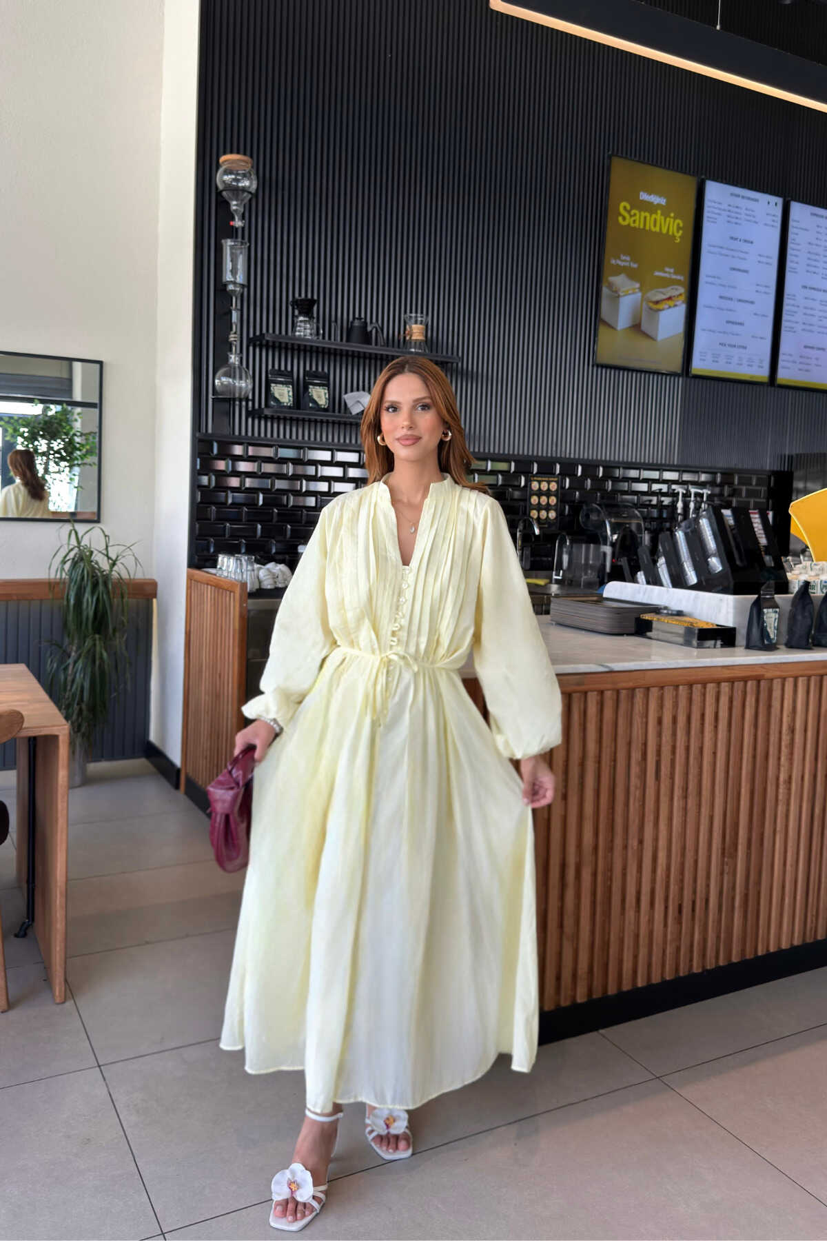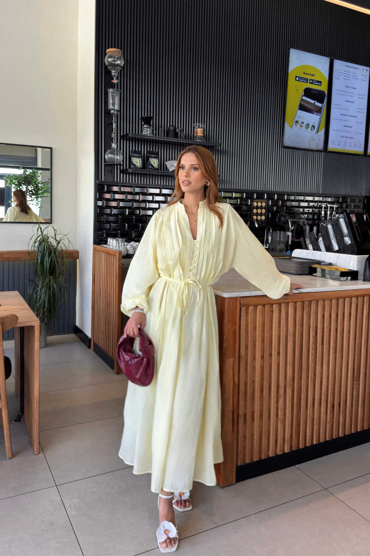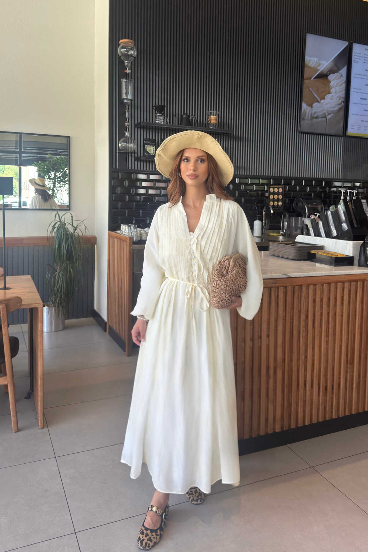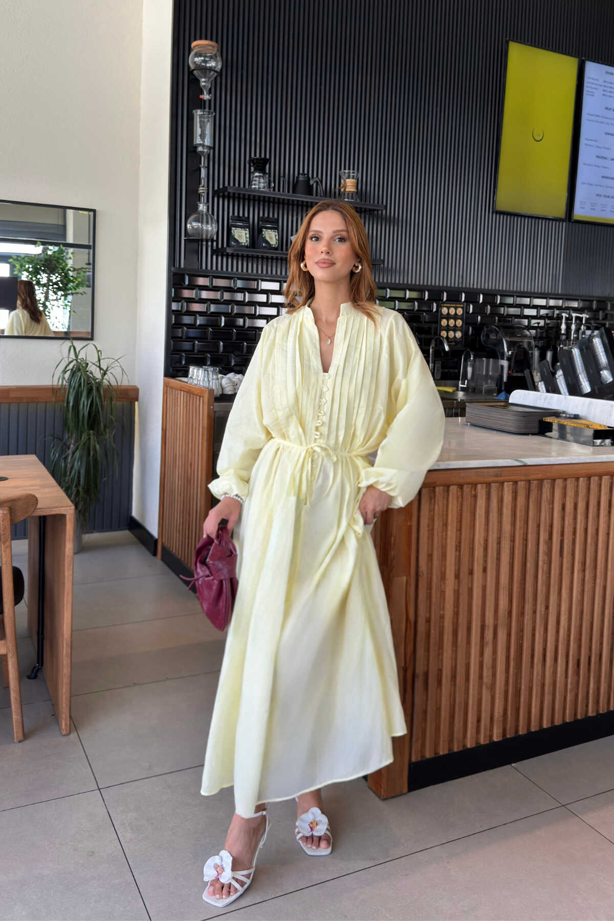 - Doğal ve zarif yaz stilini yansıtan Lina Pliseli Bohem Elbise, tesettür giyim koleksiyonunun şıklığını ön plana çıkarır.; - Basic silueti ile her vücut tipine uyum sağlayarak rahat bir kullanım sunar.; - Kemer detayı sayesinde belinizi vurgulayarak feminen bir görünüm kazandırır.; - V yaka tasarımı ile modern ve sofistike bir duruş sergiler.; - Smart persona özelliğiyle günlük kullanımdan özel davetlere kadar geniş bir yelpazede tercih edilebilir.; - Sürdürülebilir malzemelerden üretilmiş olup çevre dostu bir seçimdir.; - Yetişkin yaş grubuna hitap eden geniş beden skalasıyla herkes için idealdir.; - Şifon dokuma tipi hafifliği ve nefes alabilir yapısıyla yaz ayları için mükemmeldir.; - Astarlı yapısı sayesinde iç göstermez ve konforlu bir deneyim sunar.; - %100 pamuk materyali cildinizle dosttur ve uzun süreli kullanım için dayanıklılık sağlar.; - Fırfırlı detaylarıyla hareketli ve enerjik bir hava katarken aynı zamanda feminen çizgilere sahiptir.; - Yaz sezonunun vazgeçilmezi olan bu elbise, hem gündüz hem de gece ortamlarında şıklığınızdan ödün vermeden tarzınızı tamamlamanız için idealdir.; - Hassas yıkama talimatlarına uygun şekilde 30 derecede hassas programda yıkanabilir; böylece elbisenizin ilk günkü gibi kalmasını sağlayabilirsiniz.; - Kutusuz olarak sunulan bu ürün, minimalist tasarım anlayışını benimseyenler için uygundur.; - Cepsiz yapısı pratik kullanım imkanı tanırken mono kapama detayı kolay giyip çıkarmaya olanak sağlar.; - Dokuma kumaşı kaliteli hissiyat vererek dayanıklılık sunarken uzun süreli kullanım vaat eder.; - Kadın ve kız kullanıcılarına hitap eden zarif tasarımla her ortamda göz alıcı olmanız mümkündür.; - Kloş kalıbıyla rahat hareket etme özgürlüğü sunarken uzun boyu sayesinde şık duruşunu korur.; - Pamuklu materyali terletmez ve cilt dostudur; yaz aylarında serinlik hissi verir.
