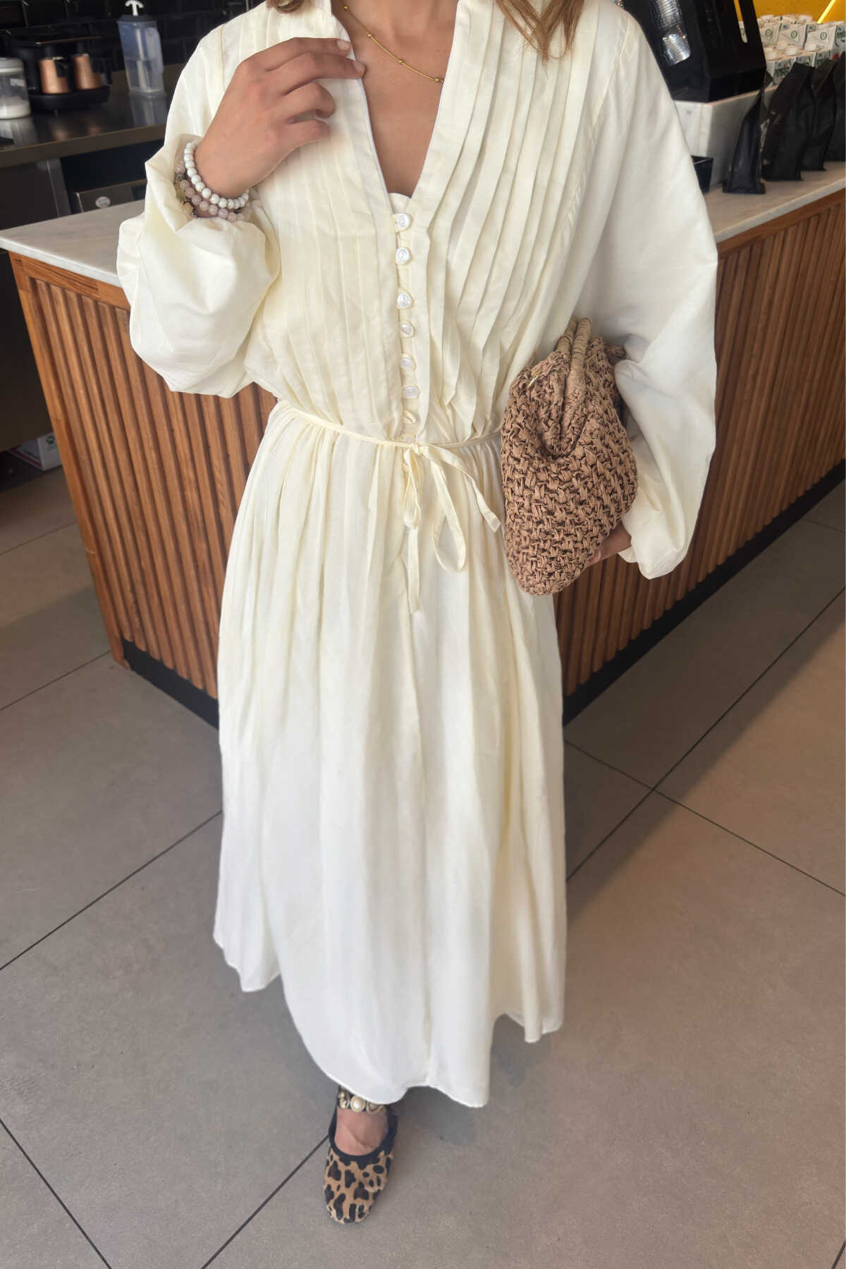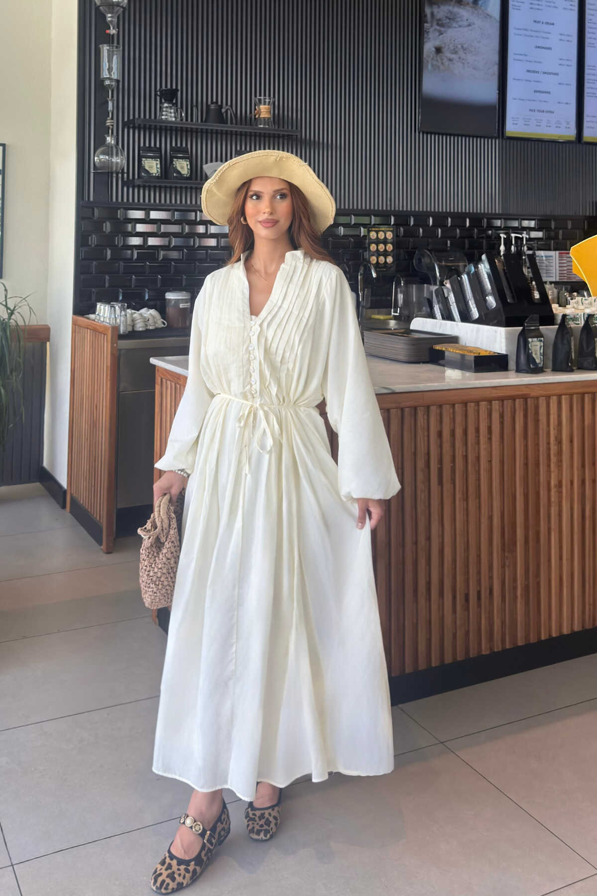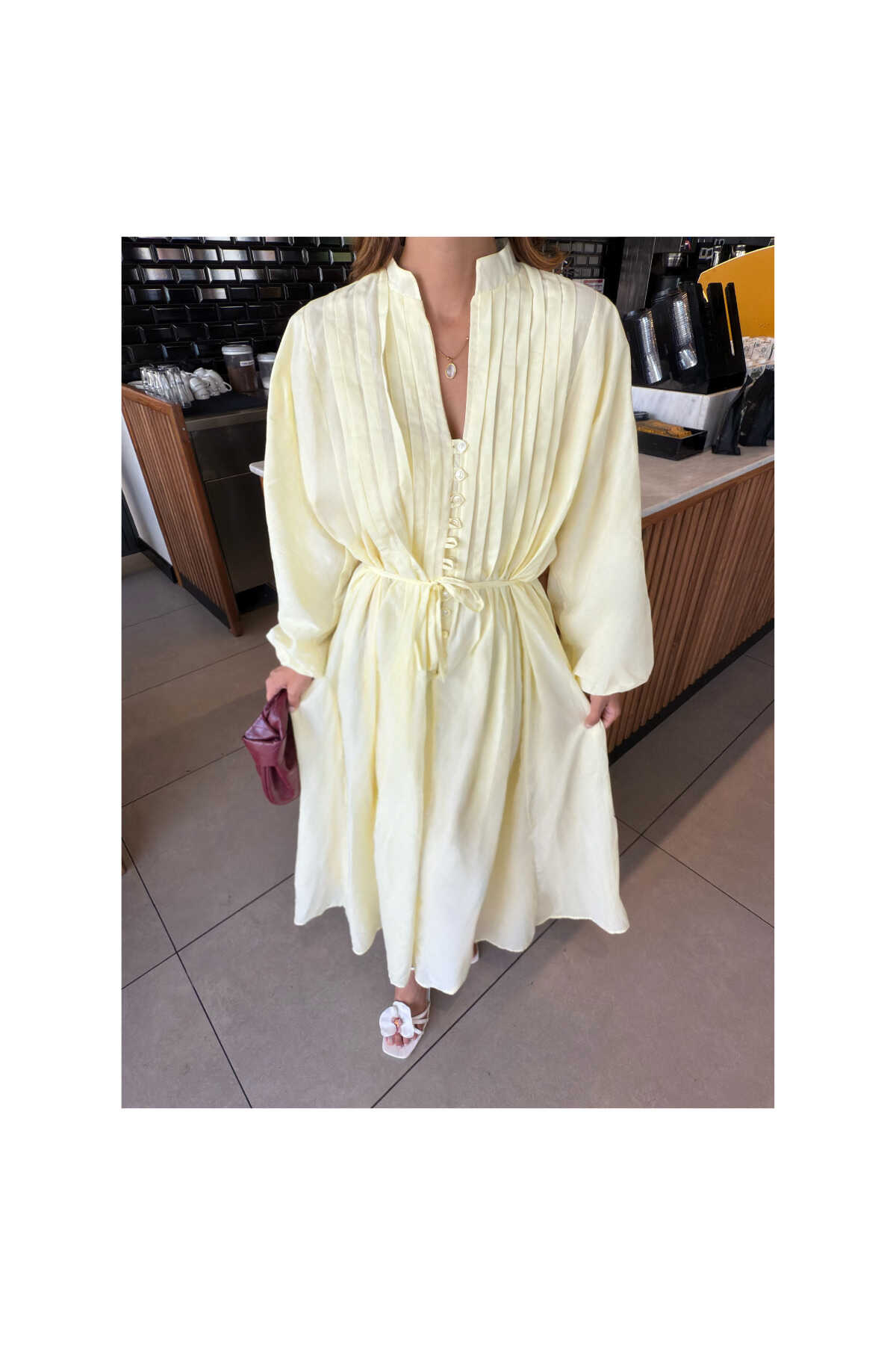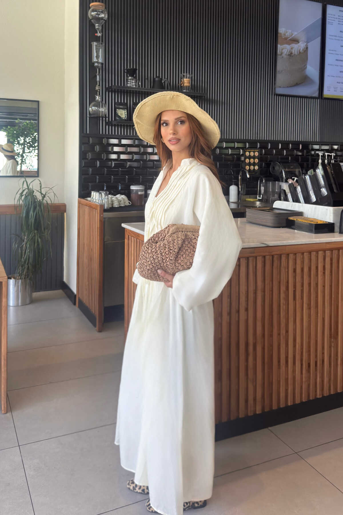- Doğal ve zarif yaz stilini yansıtan Lina Pliseli Bohem Elbise, tesettür giyim koleksiyonunun şıklığını ön plana çıkarır.; - Basic silueti ile her vücut tipine uyum sağlayarak rahat bir kullanım sunar.; - Kemer detayı sayesinde belinizi vurgulayarak feminen bir görünüm kazandırır.; - V yaka tasarımı ile modern ve sofistike bir duruş sergiler.; - Smart persona özelliğiyle günlük kullanımdan özel davetlere kadar geniş bir yelpazede tercih edilebilir.; - Sürdürülebilir malzemelerden üretilmiş olup çevre dostu bir seçimdir.; - Yetişkin yaş grubuna hitap eden geniş beden skalasıyla herkes için idealdir.; - Şifon dokuma tipi hafifliği ve nefes alabilir yapısıyla yaz ayları için mükemmeldir.; - Astarlı yapısı sayesinde iç göstermez ve konforlu bir deneyim sunar.; - %100 pamuk materyali cildinizle dosttur ve uzun süreli kullanım için dayanıklılık sağlar.; - Fırfırlı detaylarıyla hareketli ve enerjik bir hava katarken aynı zamanda feminen çizgilere sahiptir.; - Yaz sezonunun vazgeçilmezi olan bu elbise, hem gündüz hem de gece ortamlarında şıklığınızdan ödün vermeden tarzınızı tamamlamanız için idealdir.; - Hassas yıkama talimatlarına uygun şekilde 30 derecede hassas programda yıkanabilir; böylece elbisenizin ilk günkü gibi kalmasını sağlayabilirsiniz.; - Kutusuz olarak sunulan bu ürün, minimalist tasarım anlayışını benimseyenler için uygundur.; - Cepsiz yapısı pratik kullanım imkanı tanırken mono kapama detayı kolay giyip çıkarmaya olanak sağlar.; - Dokuma kumaşı kaliteli hissiyat vererek dayanıklılık sunarken uzun süreli kullanım vaat eder.; - Kadın ve kız kullanıcılarına hitap eden zarif tasarımla her ortamda göz alıcı olmanız mümkündür.; - Kloş kalıbıyla rahat hareket etme özgürlüğü sunarken uzun boyu sayesinde şık duruşunu korur.; - Pamuklu materyali terletmez ve cilt dostudur; yaz aylarında serinlik hissi verir.