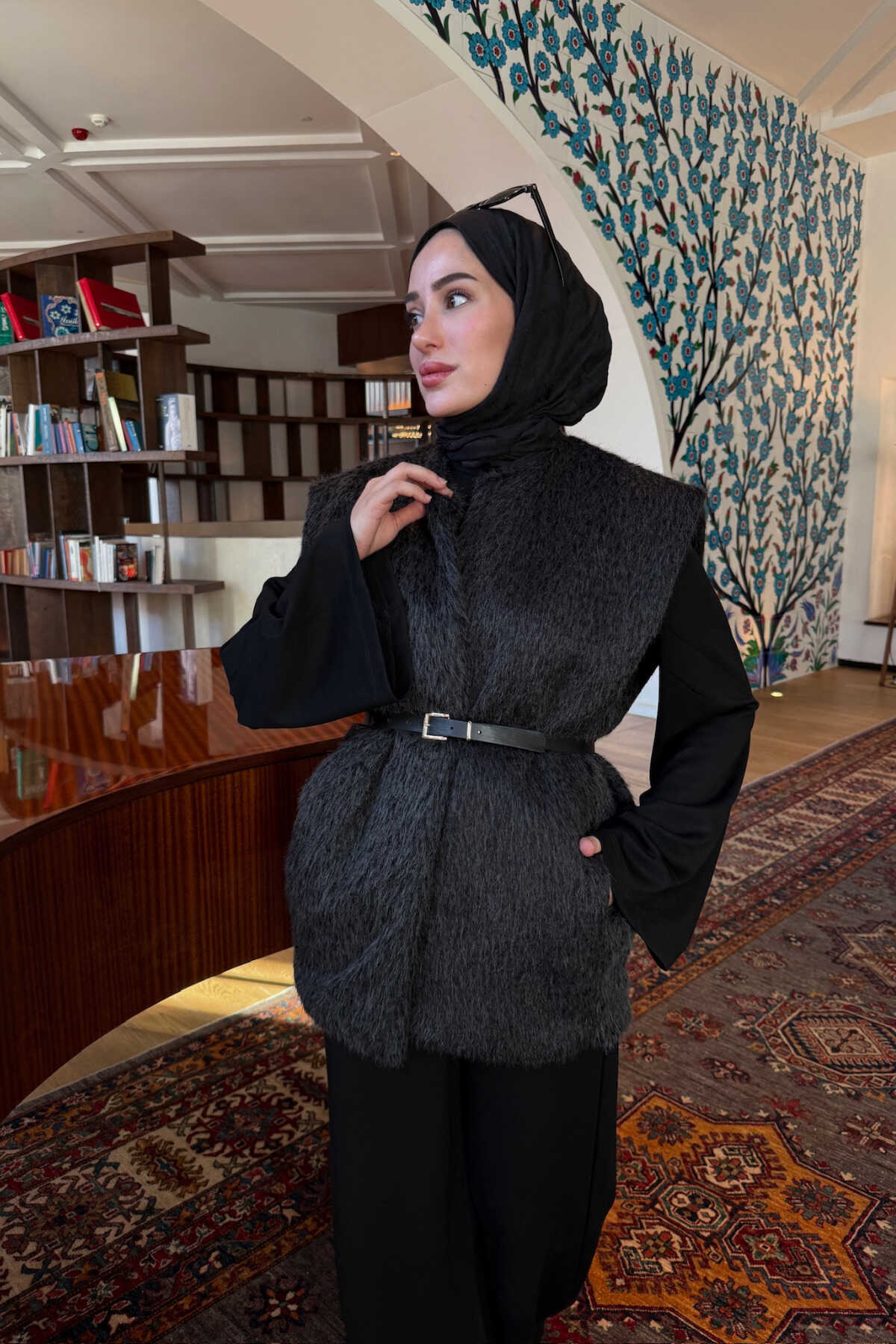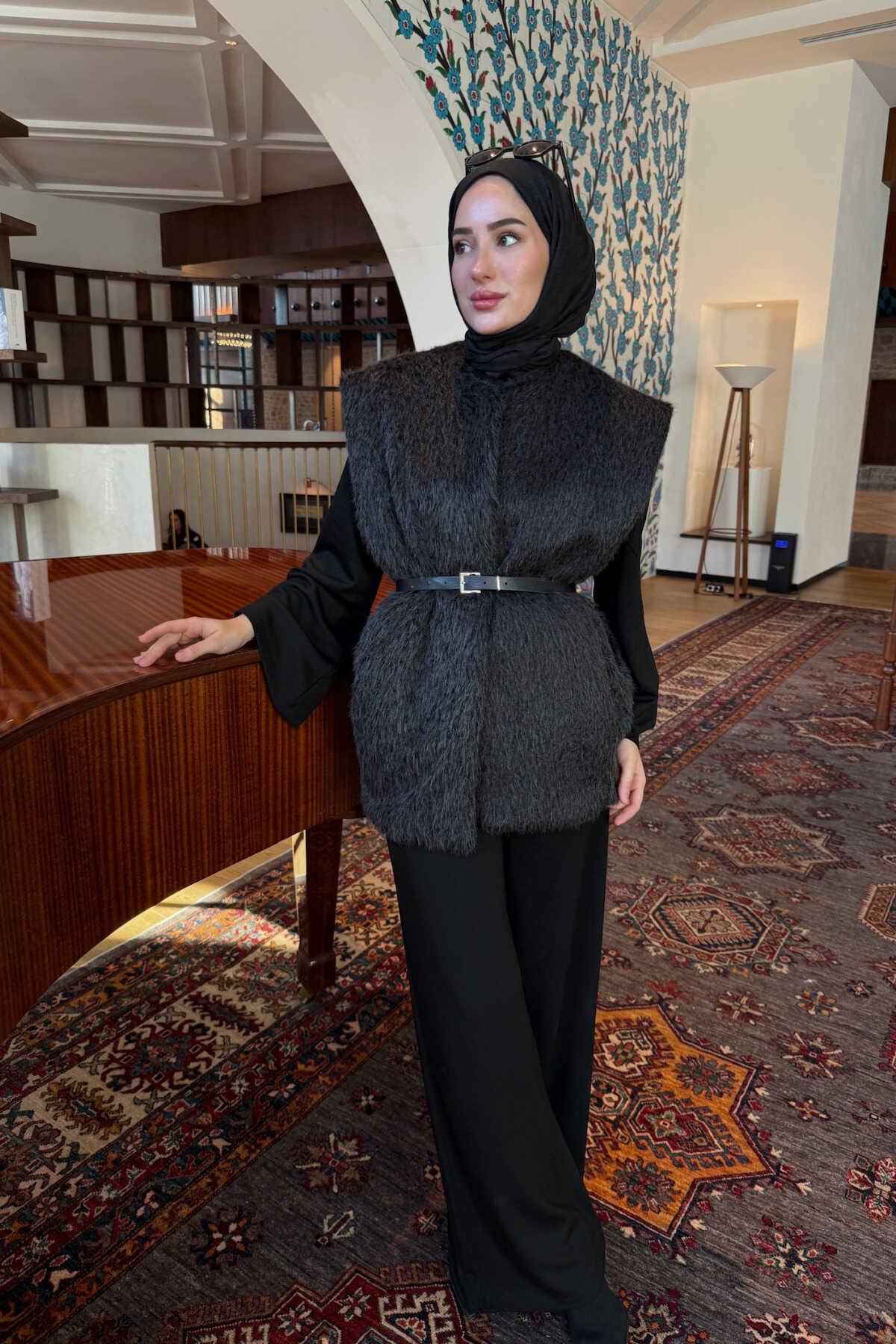 - Kış aylarında sıcak tutan kalın peluş dokuma tipi ile konforlu bir kullanım sunar.; - Bağlama / Bağcık kapama şekli sayesinde kolayca giyilip çıkarılabilir ve kişisel zevke göre ayarlanabilir.; - Kemerli tasarımı ile belinizi vurgulayan şık bir görünüm sağlar.; - Suni tüy detayları, modern ve zarif bir stil oluştururken aynı zamanda ısı yalıtımına katkıda bulunur.; - Cepsiz tasarımı, minimalist ve sade bir görünüm için idealdir.; - Basic siluetiyle her türlü kombinle uyum sağlar ve rahatlıkla günlük kullanım için uygundur.; - Dolgusuz yapısı, hareket özgürlüğünüzü kısıtlamadan sıcaklık sunar.; - Tesettür giyim koleksiyonuna uygun olarak tasarlanmıştır, modern ve şık bir seçenek olarak öne çıkar.; - Düz deseniyle zamansız bir parça olup, farklı renklerle kolayca eşleştirilebilir.; - Smart persona