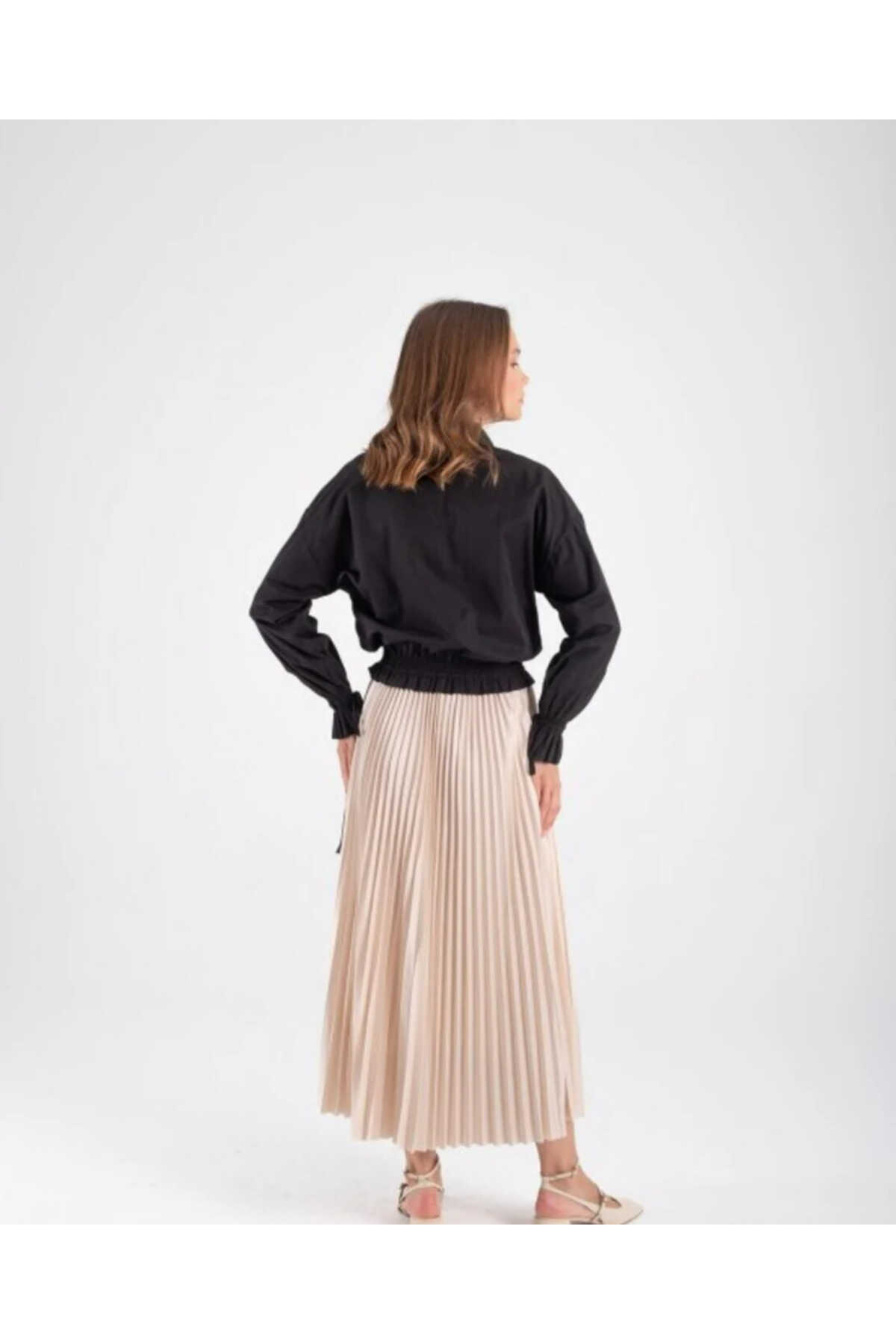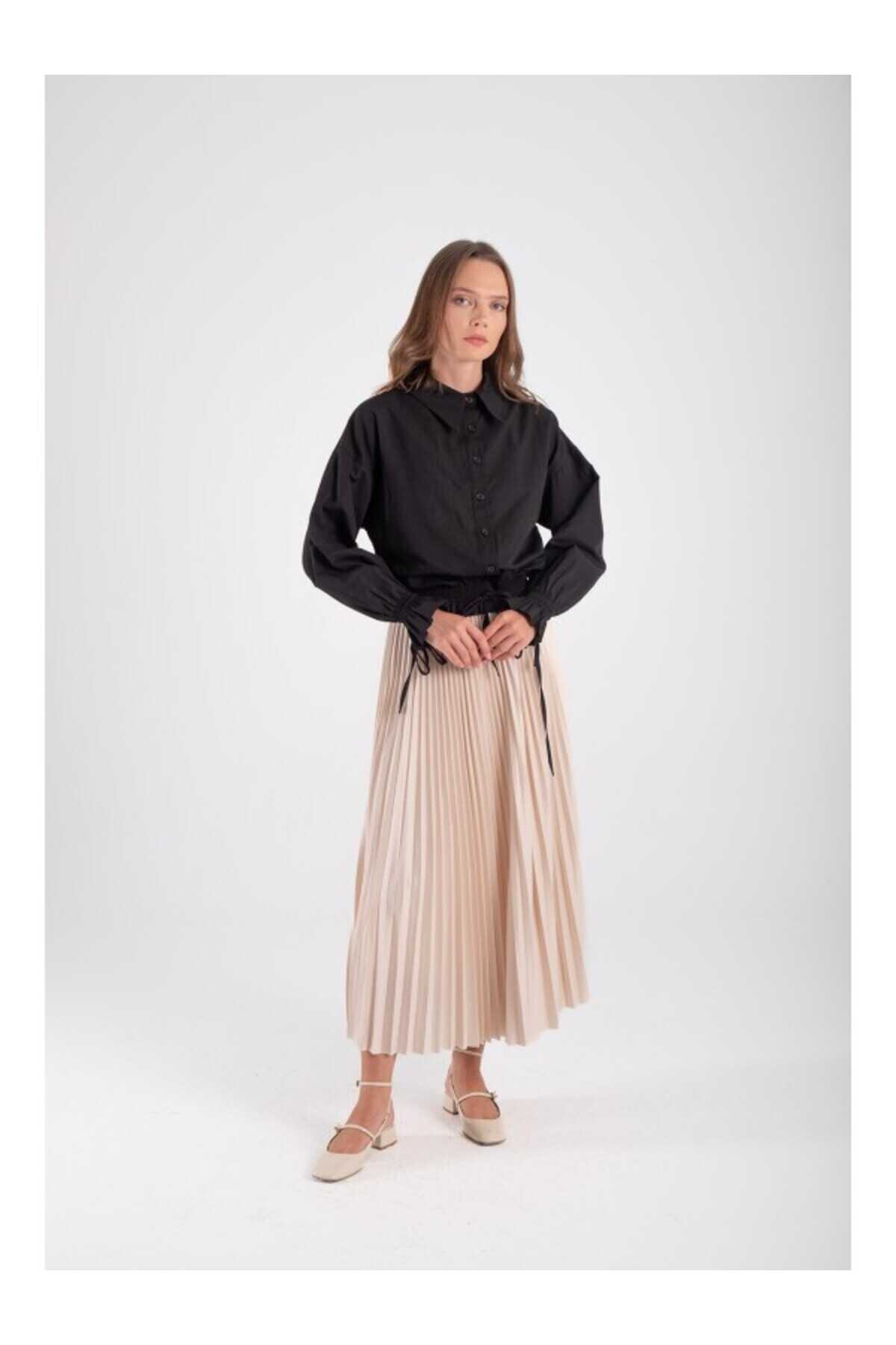 - Zarif tasarımıyla günlük kullanımdan özel gün kombinlerine kadar her ortamda rahatlıkla tercih edilebilen midi etek.; - Dokuma kumaş yapısı sayesinde hem dayanıklı hem de şık bir görünüm sunar.; - Astarsız yapısı ile hafif ve ferah bir kullanım sağlar; 30°C'de elde veya makinede hassas programda yıkama imkanı sunar.; - Lastikli bel tasarımı sayesinde konforlu bir oturuş sağlar ve vücut hatlarını nazikçe sararak zarif bir siluet oluşturur.; - Bej rengiyle kolayca kombinlenebilir ve her mevsime uygun ince yapısıyla gardırobunuzun vazgeçilmezi haline gelir.; - Tesettür giyim koleksiyonuna özel olarak tasarlanmış bu midi etek, modern kesimiyle dikkat çekerken tesettür modasına da uyum sağlar.; - Düz deseniyle sadelikten yana olanların tercihi olup, farklı aksesuarlarla zenginleştirilebilecek çok yönlülük sunar.; - Bel kısmındaki lastik detayı hem pratiklik hem de şıklık katarken, standart bedeniyle geniş kullanıcı kitlesine hitap eder.; - Tüm sezonlarda rahatlıkla kullanılabilen bu etek, mevsimsel geçişlerde de ideal bir seçimdir.; - Cepsiz yapısıyla minimalist tasarım anlayışını benimseyenlere hitap ederken, bel kısmındaki lastik detayı ile konforlu bir kullanım vaat eder.; - Tesettür giyimdeki modern çizgiyi yansıtan bu midi etek, her yaş grubundan kadının gardrobunda yerini almayı hak ediyor.